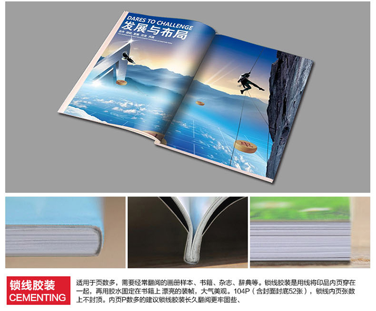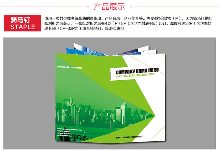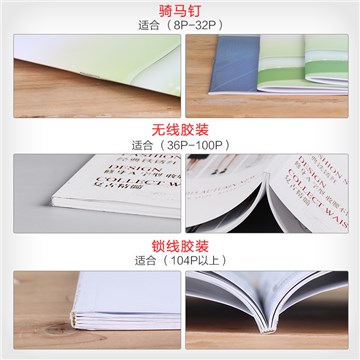 適用于頁(yè)數(shù)少或紙張薄的宣傳冊(cè)產(chǎn)品目錄、企業(yè)簡(jiǎn)介等,價(jià)格低,適合大量派發(fā)。
