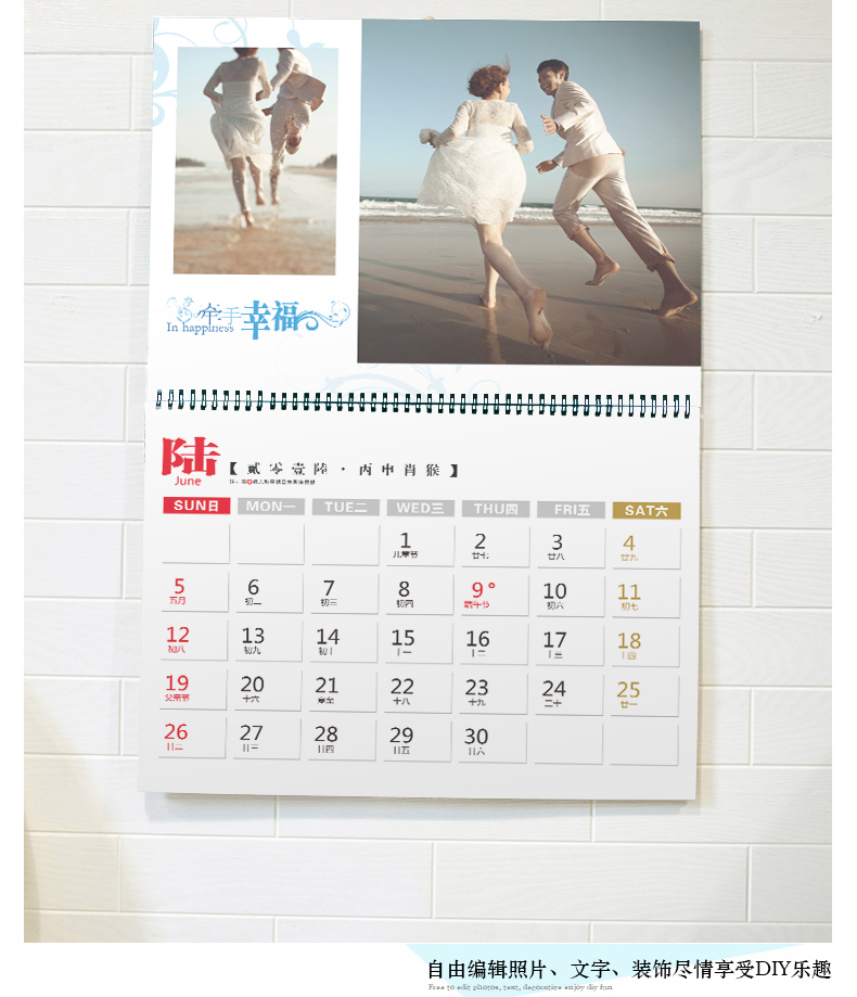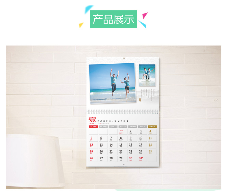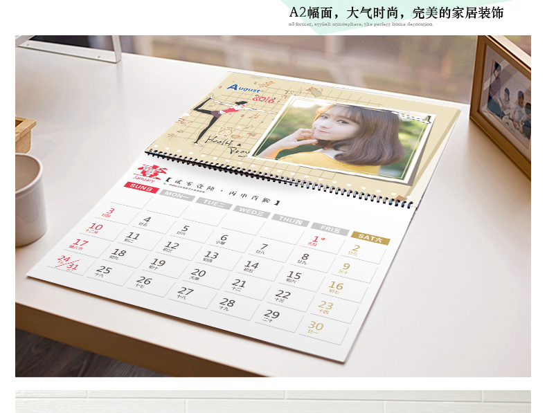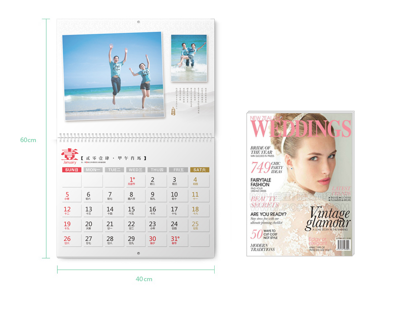 雙面定制,13頁,包含封面及12個月,印刷:單面印刷、裝訂:簡圈裝。