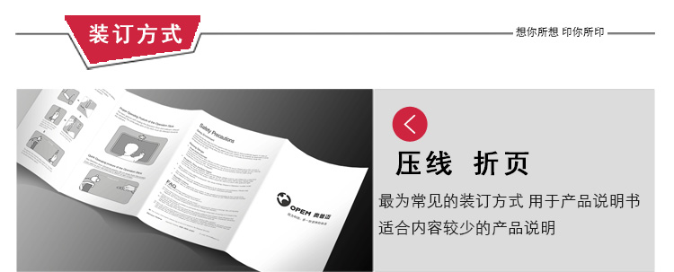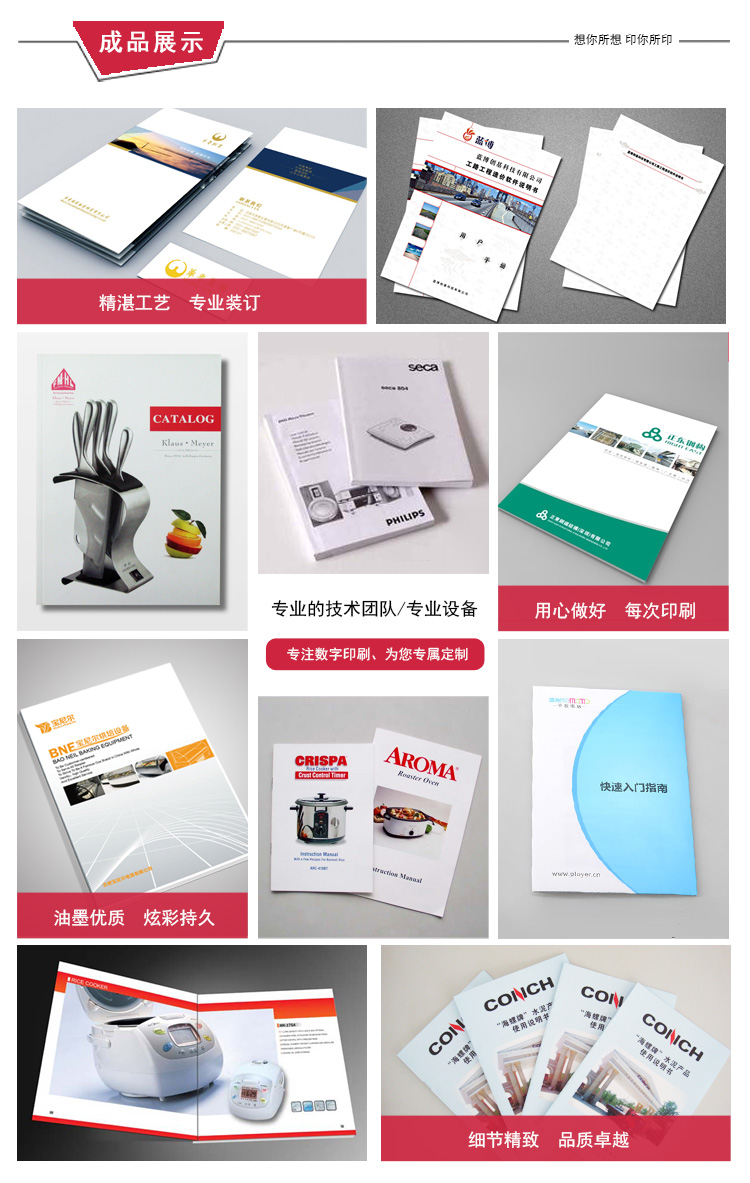 一般說明說采用70g雙膠紙(打印紙)騎馬釘裝訂,可根據要求定制